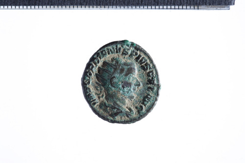 Dritto: Busto radiato di Gordiano III a d. con corazza e paludamentum, di tre quarti di spalle; contorno perlinato.. Rovescio: Gordiano in abiti militari, stante a d., reggente spiedo nella d. e globo nella s. protesa; contorno perlinato.