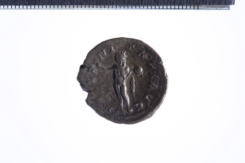 Dritto: Busto radiato di Gordiano III a d. con corazza (?) e paludamentum, di tre quarti di spalle; contorno perlinato.. Rovescio: Sol radiato stante in posizione frontale,la testa volta a s., reggente globo nella s.; braccio d. proteso; contorno perlinato.