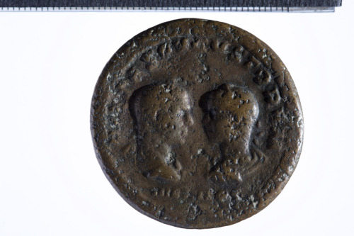 Dritto: Busto diademato e drappeggiato di Otacilia a d., di tre quarti in avanti; contorno perlinato.. Rovescio: Busti laureati affrontati di Filippo I a d. con corazza (?) e paludamentum e Filippo II a s. con corazza (?) e paludamentum; contorno perlinato.
