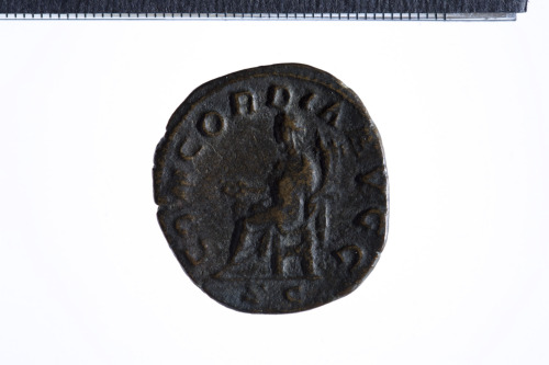 Dritto: Busto diademato e drappeggiato di Otacilia a d., di tre quarti in avanti; contorno perlinato (?).. Rovescio: Concordia seduta a s., reggente doppia cornucopia nella s. e patera nella d. protesa; contorno perlinato.
