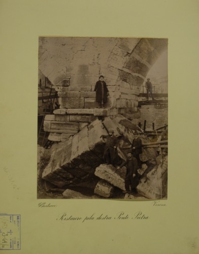 - NOTIZIE STORICO CRITICHE I lavori documentati in questa stampa fotografica sono parte del progetto di massima concernente l'assestamento dell'alveo urbano d'Adige di Verona, redatto dalla Commissione Governativa Municipale, diretta dall'ingegner Capo Municipale Emilio Cavalieri. Il progetto fu approvato dal Consiglio Comunale in data 11 settembre 1885, secondo le modifiche redatte al progetto dall'ingegner Capo Municipale Tullio Donatelli; fu riapprovato con delibera dal Consiglio Comunale in data 25 ottobre 1889 e dal Ministero dei Lavori Pubblici con un'ordinanza pervenuta al Comune di Verona il 3 aprile 1890. Il tratto d'alveo d'Adige documentato riguarda la sezione del progetto denominata "Tronco II". I lavori furono realizzati dall'impresa costruttrice Giacomo dott. Laschi tra il 4 febbraio 1890 e il 31 marzo 1894.