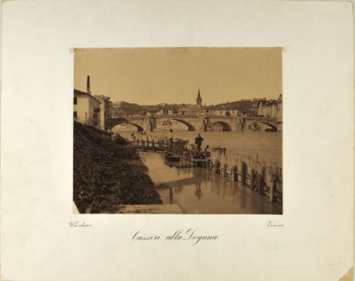 - NOTIZIE STORICO CRITICHE I lavori rappresentati in questa stampa sono una parte di quelli compresi nel progetto di massima redatto, per la sistemazione dell'alveo urbano dell'Adige in Verona, dalla Commissione Governativa Municipale diretta dall'ingegnere Capo Municipale Emilio Cavalieri. Approvato dal Consiglio Comunale in data 11 settembre 1885, secondo la modifica al progetto redatta dall'ingegnere Capo Municipale Tullio Donatelli, approvato con delibera del Cosiglio Comunale in data 25 ottobre 1889, e dal Ministero dei Lavori Pubblici pervenuta al Comune il 3 aprile 1890. Il tratto rappresentato è riferibile alla parte del progetto denominato tronco II. I lavori si svolsero dal 4 febbraio 1890 al 31 marzo 1894 dall'impresa costruttrice Giacomo dott. Laschi vincitrice dell'appalto.