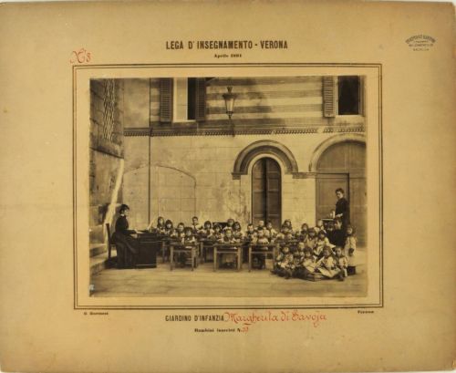- ISCRIZIONI sul supporto secondario: recto: in alto al centro - Lega d'insegnamento - Verona Aprile 1891 - a penna -