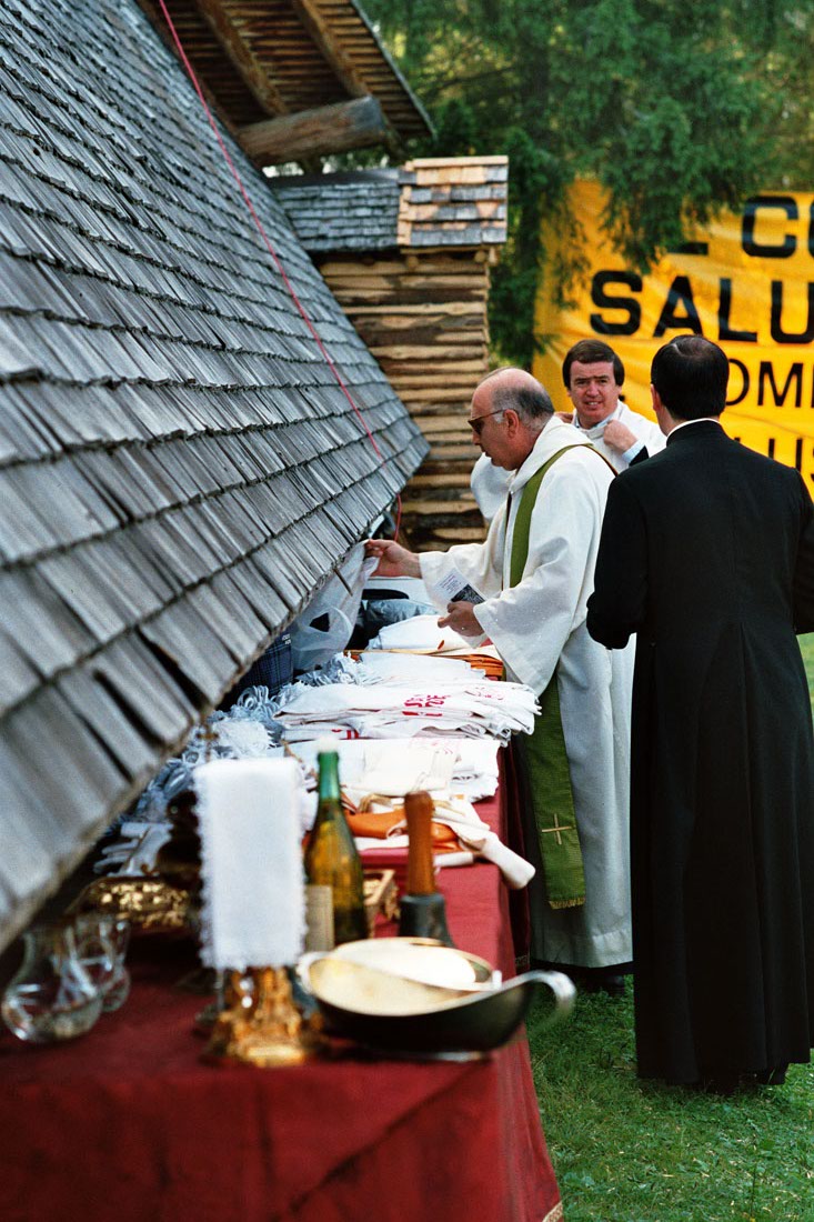 Preparazione della messa di Papa Giovanni Paolo II - Val Visdende