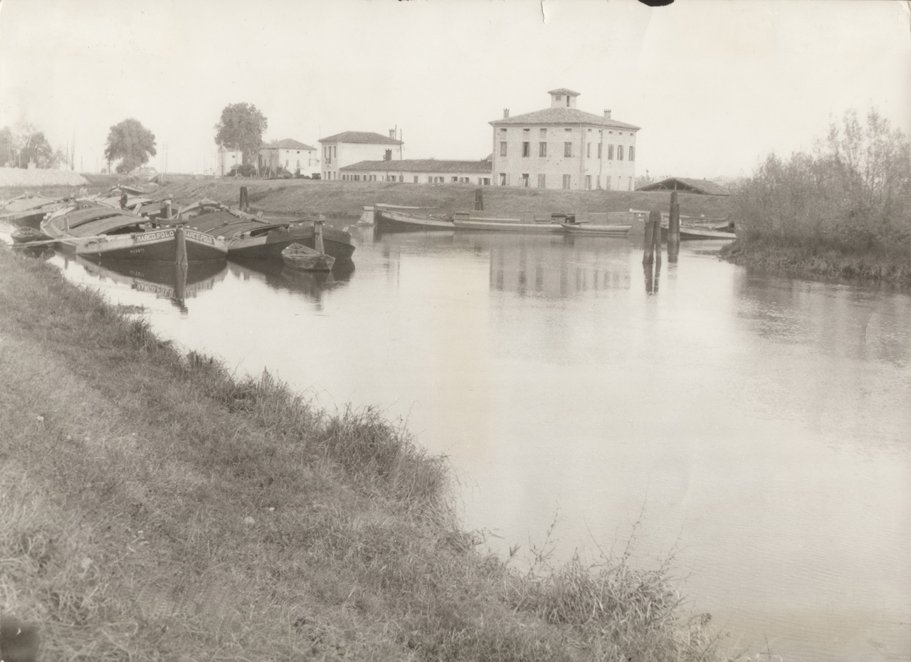 Battaglia Terme, anni '50. Barche cariche in attesa della passà.