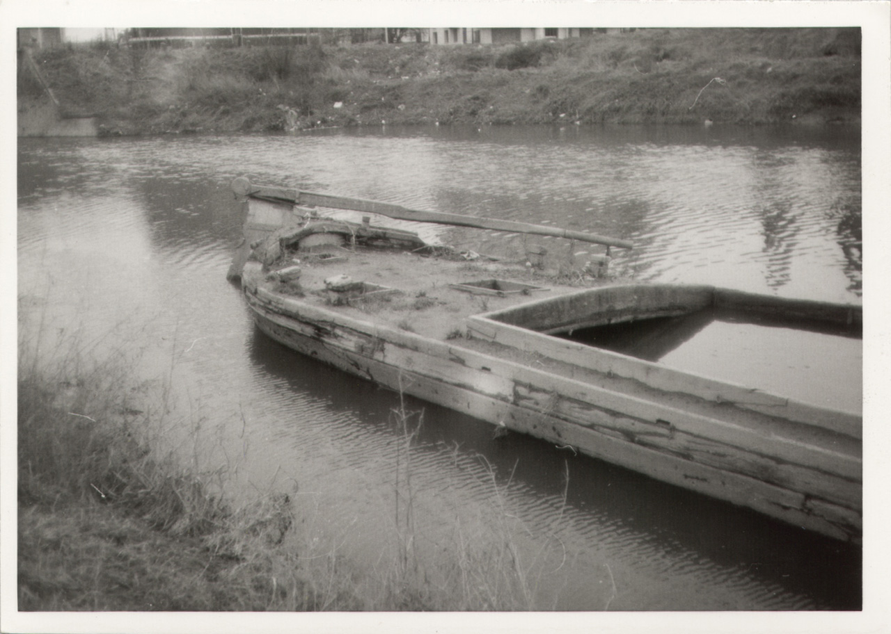 Il burcio San Domenico abbandonato nel canale Rialto a Battaglia Terme.
