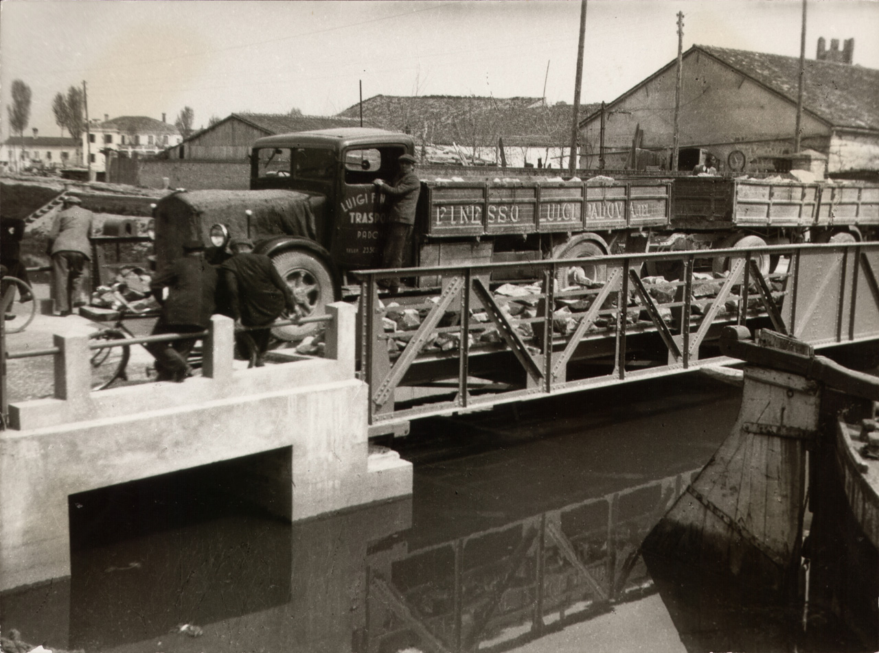 Collaudo del ponte girevole sul canale Bisatto a Monselice.