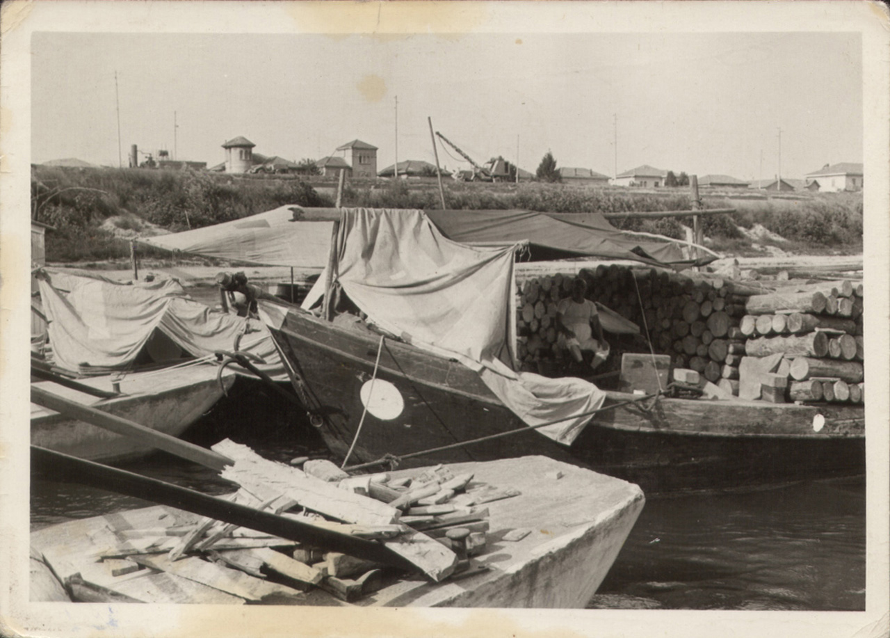 Il burcio Sergio ormeggiato al ponte di barche di Polesella.