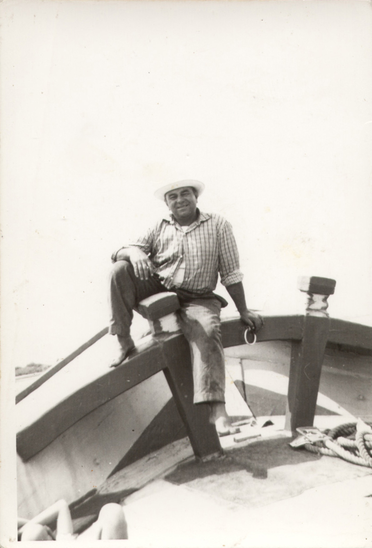 Foto ricordo del barcaro Silvestro Fusaro a bordo del suo burcio.