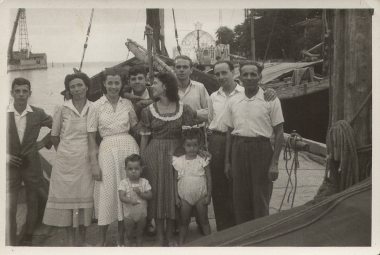 Foto ricordo della famiglia Cappellozza a bordo della sua imbarcazione a Venezia.