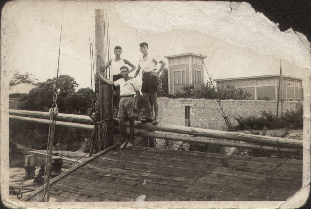 Foto ricordo dei giovani della famiglia Cappellozza a bordo del loro burcio.