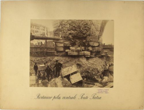 • ISCRIZIONI sul supporto secondario: recto: in basso al centro - Ristauro pila centrale Ponte Pietra - a matita -