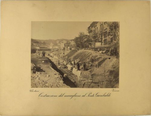 - ISCRIZIONI sul supporto secondario: recto: in basso al centro - Costruzione del muraglione al Ponte Garibaldi - a matita -