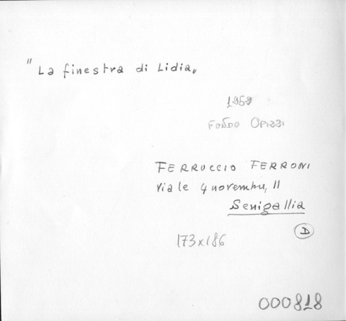 - ISCRIZIONI sul supporto primario: verso: in alto a sinistra - "La finestra di Lidia" - a matita -