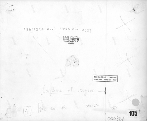- ISCRIZIONI sul supporto primario: verso: in alto a sinistra - "Ragazza alla finestra" - a matita -