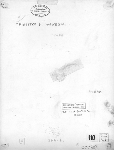 - ISCRIZIONI sul supporto primario: verso: in alto a sinistra - "Finestre di Venezia" - a matita -