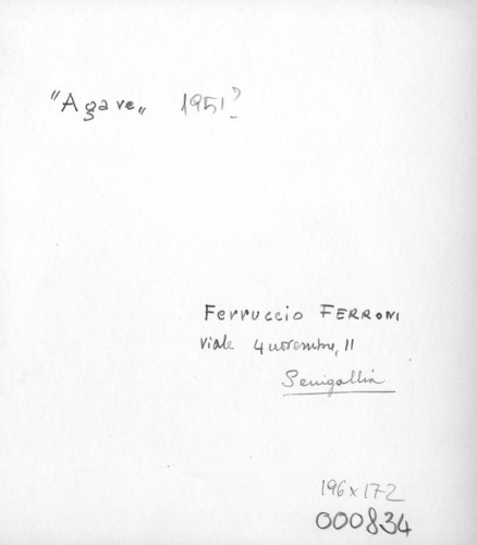 - ISCRIZIONI sul supporto primario: verso: in alto a sinistra - "Agave" - a matita -