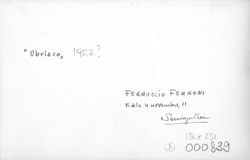 - ISCRIZIONI sul supporto primario: verso: in alto a sinistra - "Ubriaco" - a matita -