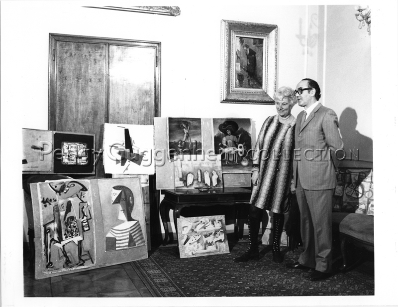 Peggy Guggenheim with marshall Salvatore Barba at the Venice police station after the recovery of the artworks stolen from Palazzo Venier dei Leoni, Venice, 1972.