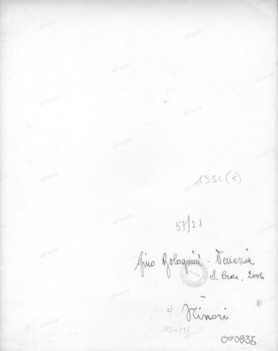- NOTIZIE STORICO CRITICHE ISRI: Nell'iscrizione sul verso del supporto primario (indicazione di responsabilità), "2)" sembra scritto da una mano differente.