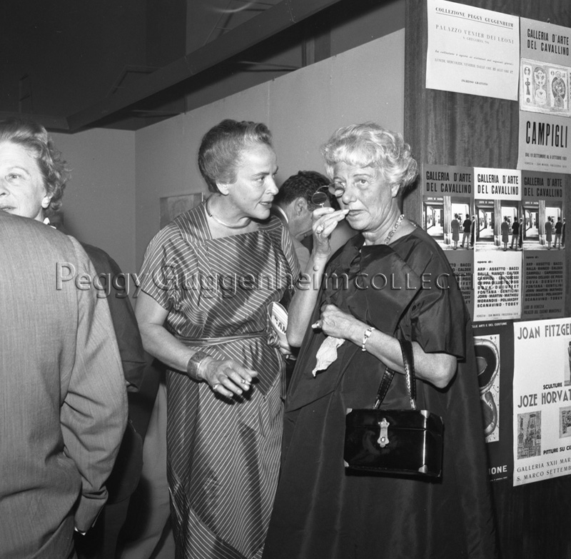 Giuditta Scalini, Massimo Campigli's wife, and Peggy Guggenheim at the Galleria del Cavallino, Venice, September 1961.