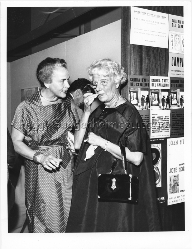 Giuditta Scalini, Massimo Campigli's wife, and Peggy Guggenheim at the Galleria del Cavallino, Venice, September 1961.