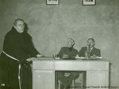 - NOTIZIE STORICO CRITICHE Fotografia individuata da Giannantonio Paladini nel 2001 e soggettata: "Congresso della Soc. Italiana per il Risorgimento delle Scienze tenuto in Ca' Foscari 1937" (cartella n. 5). All'interno della cartella che contiene la fotografia compare anche un foglio dattiloscritto sul quale si legge: "Congresso della Soc. Italiana per il Risorgimento delle Scienze tenuto in Ca' Foscari (settembre 1937).