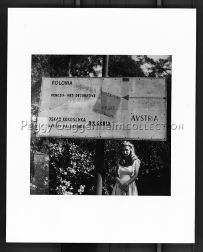 Pegeen Guggenheim accanto all'insegna della XXIV Biennale dArte di Venezia del 1948.