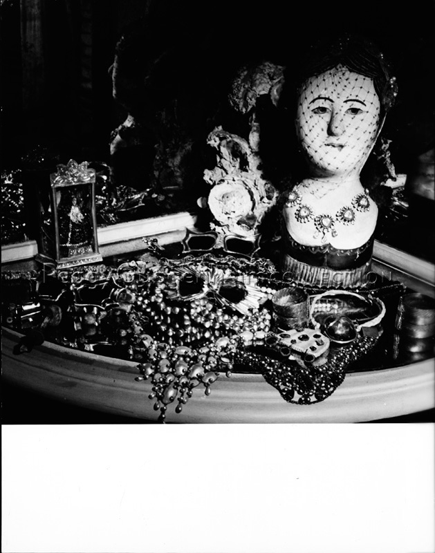 Gioielli e occhiali della collezione Peggy Guggenheim esposti nella camera da letto a Palazzo Venier dei Leoni.