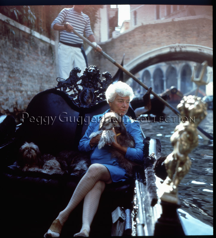 Peggy Guggenheim a bordo della sua gondola; Venezia, 1967 ca.