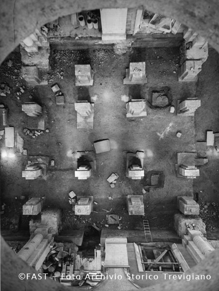 Vicenza, Cattedrale bombardata, veduta degli scavi archeologici della cripta