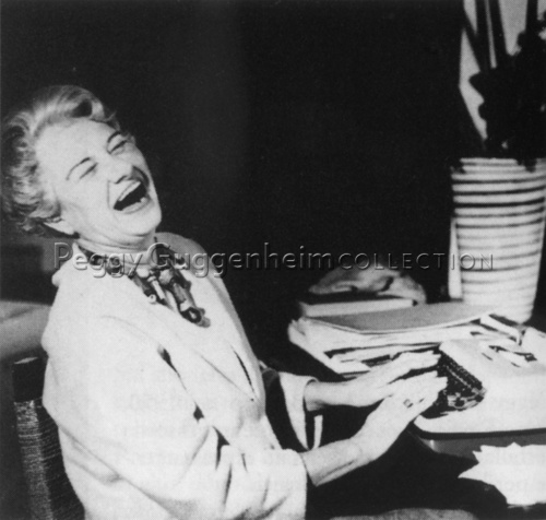 Peggy Guggenheim alla macchina da scrivere, a Palazzo Venier dei Leoni, anni '60.