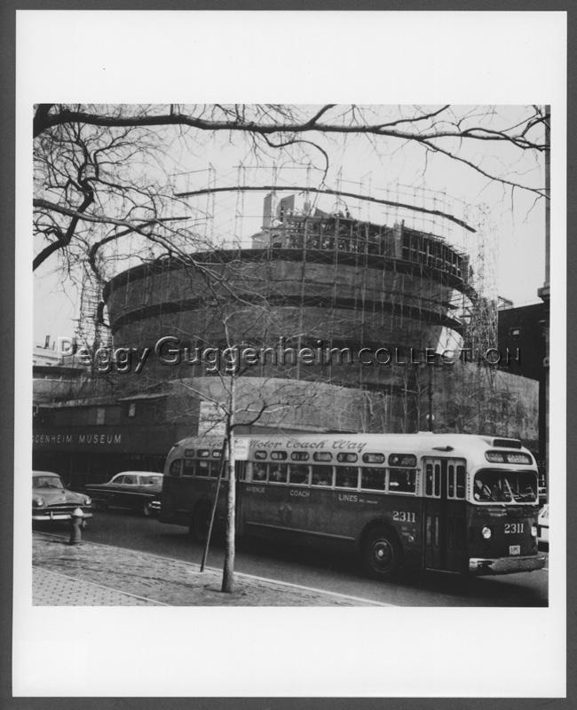 The Solomon R. Guggenmheim Museum under building construction in the late 1950s. The building opened to the public in 1959
