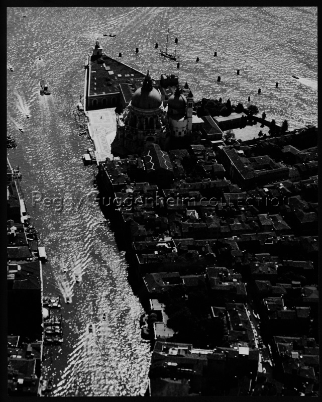 Veduta aerea dell'ultimo tratto del Canal Grande: in basso al centro Palazzo Venier dei Leoni, sede della Peggy Guggenheim Collection