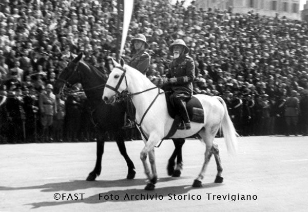 Badoglio e De Bono sfilano a cavallo nel primo anniversario della fondazione dell'Impero