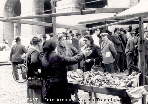 Treviso, venditrice di funghi in Piazza del Monte di Pietà