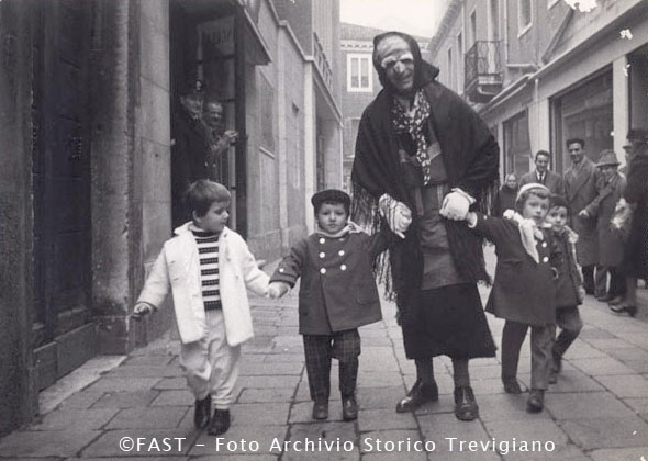 Venezia, la Befana passeggia per mano con dei bambini