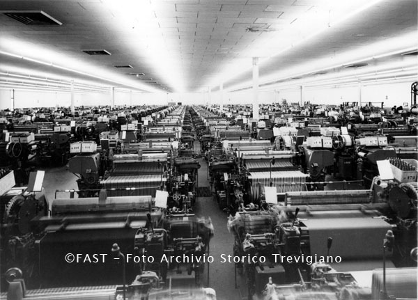 Tessitura Monti di Maserada sul Piave. Sala telai automatici a navetta