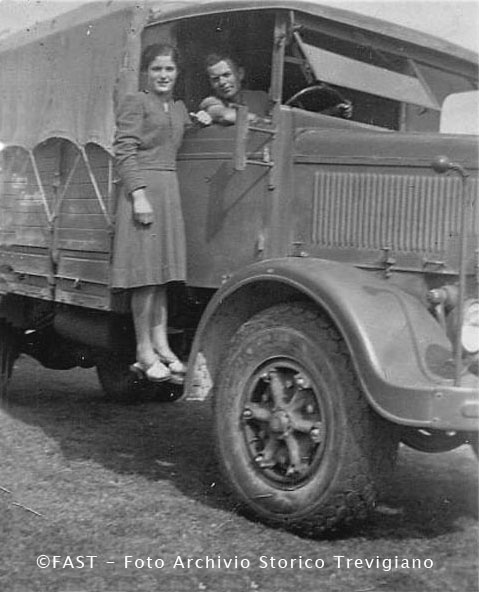 Gina De Faveri con il fidanzato Antonio Gastaldon sul camion militare