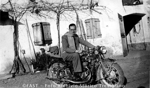 Rino Urio sulla moto Bianchi 500