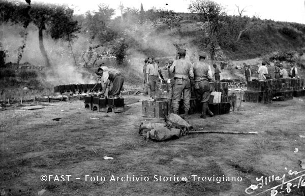 Soldati impegnati nella preparazione del rancio