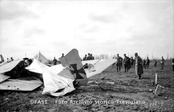 Soldati intorno ad un aeroplano nemico abbattuto