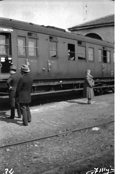 Un ufficiale saluta un bambino in partenza su un treno