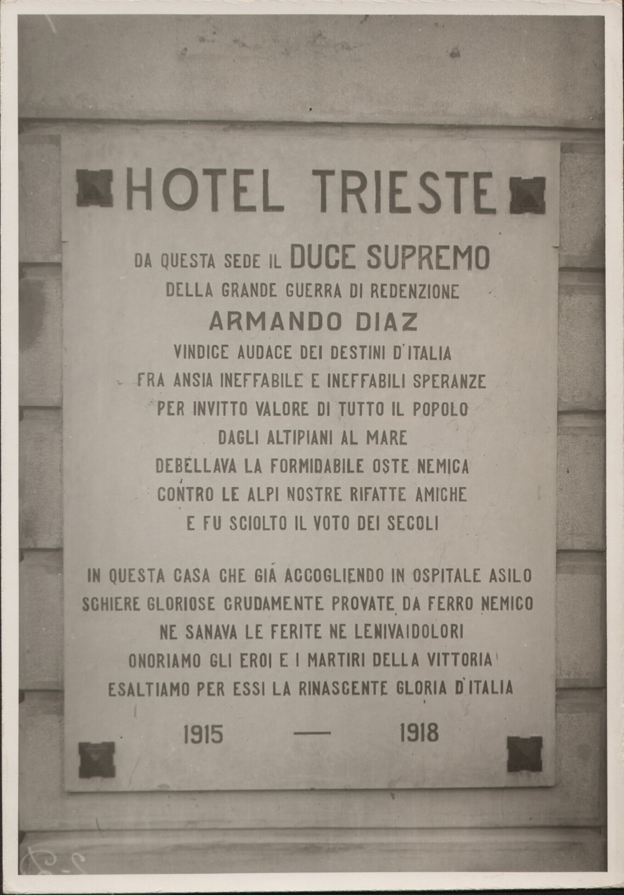 Targa commemorativa, hotel Trieste di Abano Terme