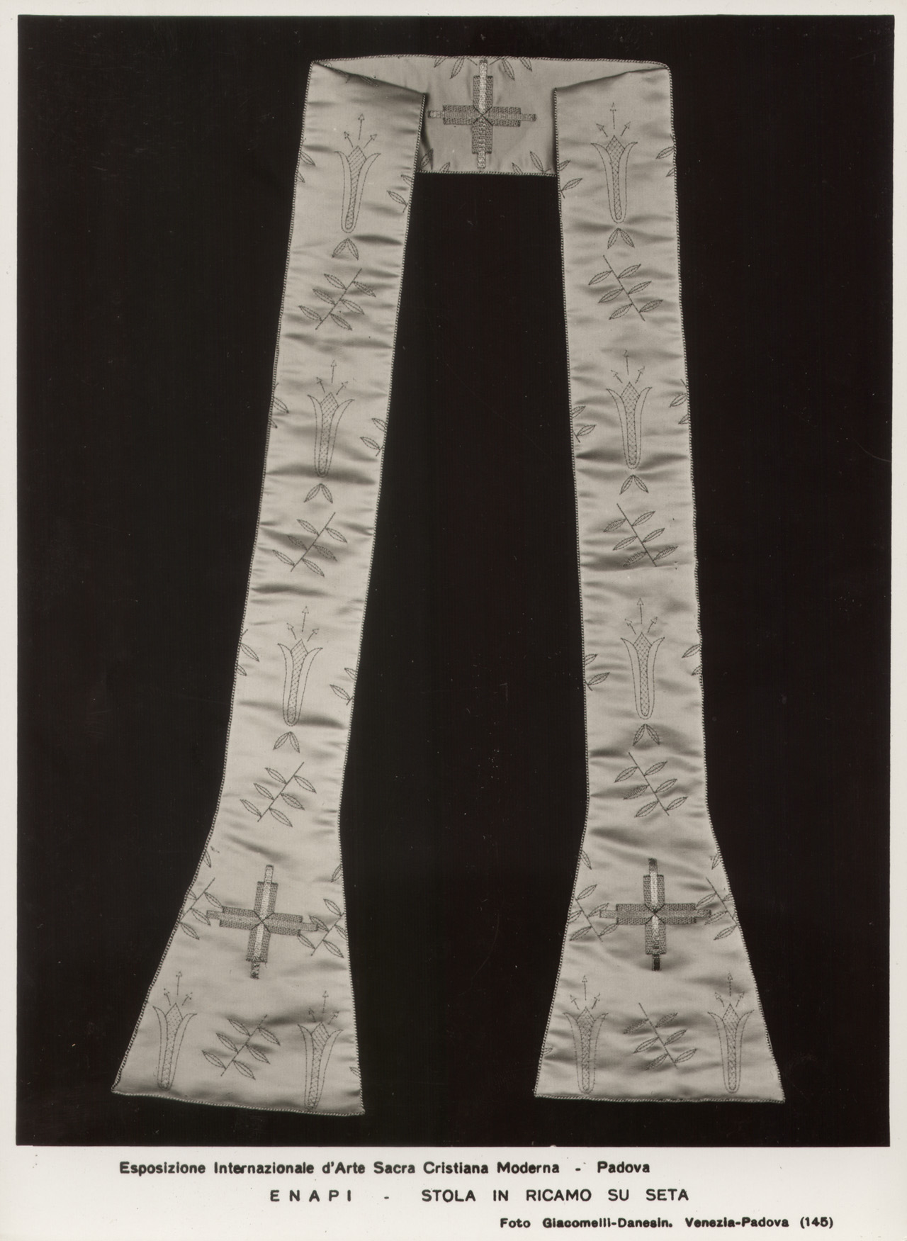 Esposizione Internazionale d'Arte Sacra Cristiana Moderna - Padova - ENAPI - STOLA Foto Giacomelli-Danesin. Venezia-Padova Stola in ricamo su seta