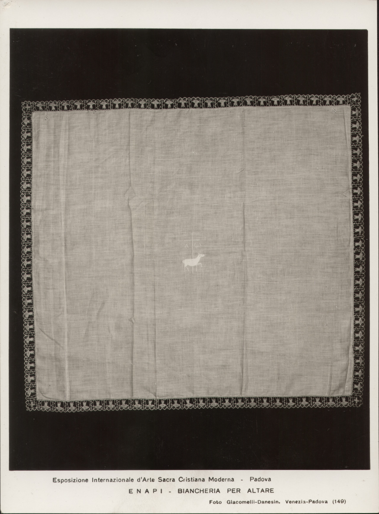 Esposizione Internazionale d'Arte Sacra Cristiana Moderna - Padova - ENAPI - BIANCHERIA PER ALTARE Foto Giacomelli-Danesin. Venezia-Padova Biancheria per altare