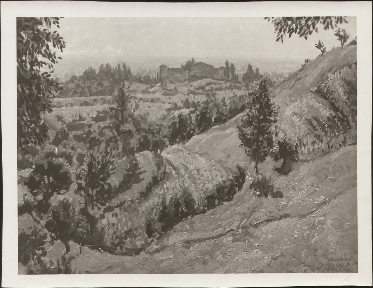 - ISCRIZIONI sul supporto primario: verso: in alto - San Zenone degli Ezzelini - mattino 28 agosto 1930 da la Riva alle [...], su la pianura verso la Villa dei Conti di Rovera. Teodoro Volpe - a matita viola - italiano