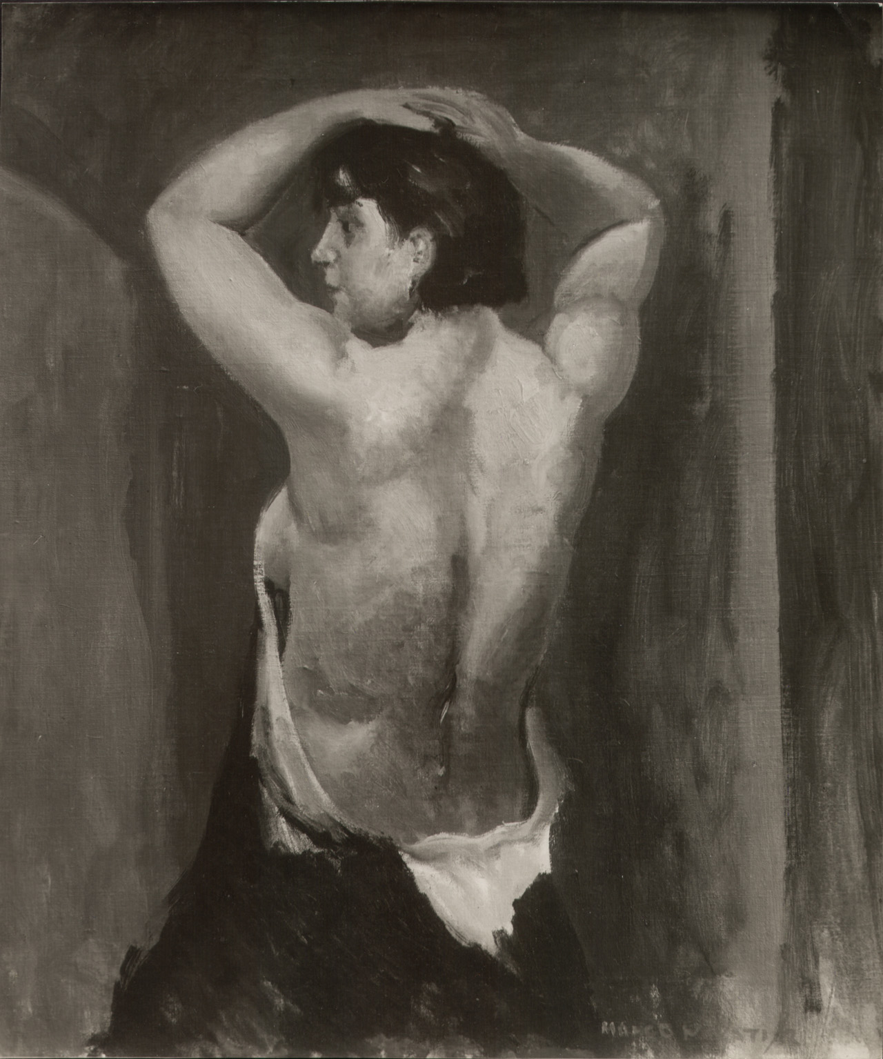 Foto di un dipinto realizzato da Marco Lovati rappresentante una donna seminuda di spalle