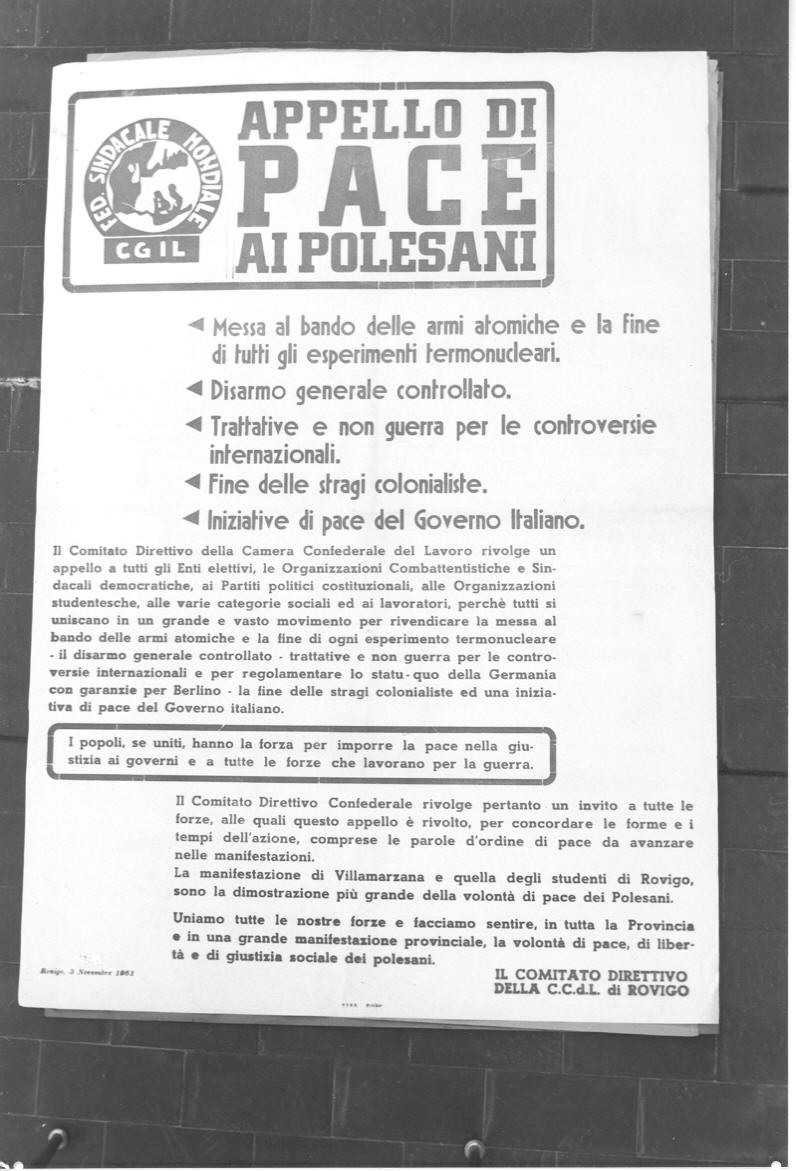 Manifesto appello per la pace ai polesani dalla Cgil