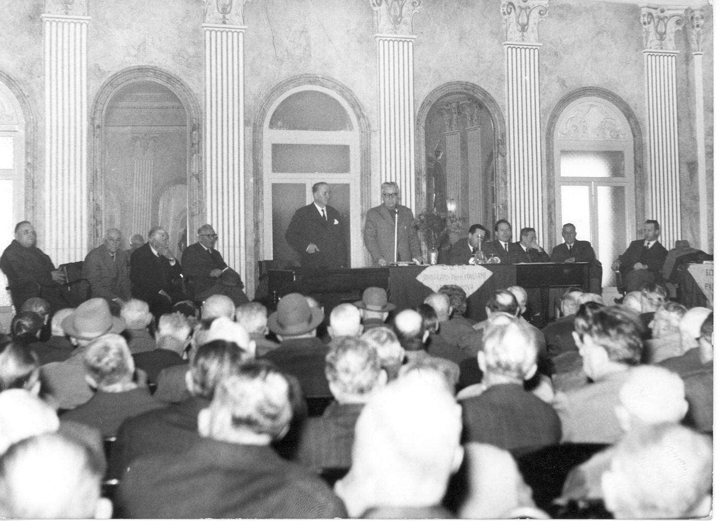 Tavolo presidenza di riunione del sindacato ferrovieri